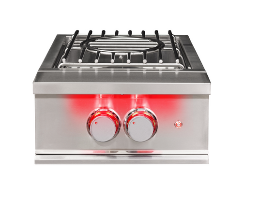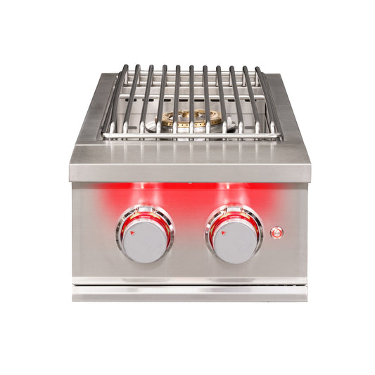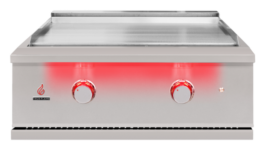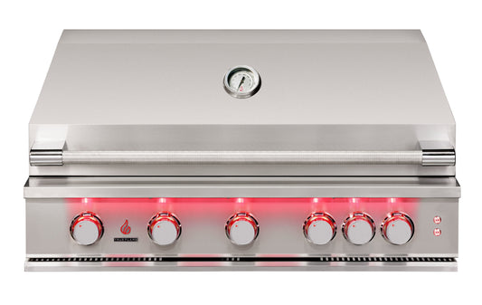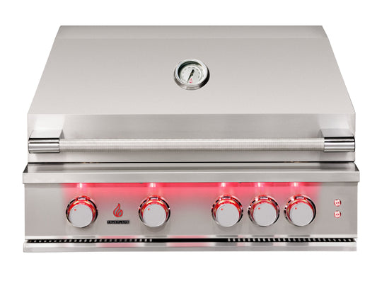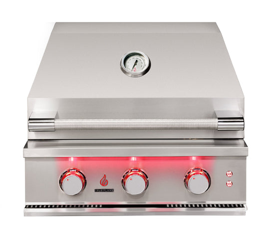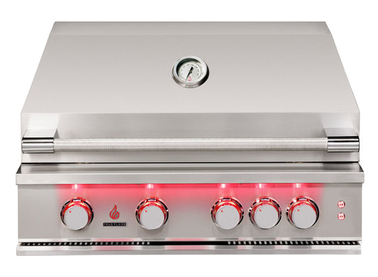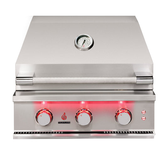 The newly introduced TrueFlame grills are a testament to exceptional value through premium craftsmanship. Constructed with high-grade #304 stainless steel, this grill series boasts an array of impressive features, underscored by a Gold Standard Lifetime Warranty, ensuring the finest grilling experience for a lifetime. Key highlights include a full-length exterior LED bar above the knobs and halogen interior lighting, enhancing both aesthetics and functionality. Each knob is backed with exterior lighting to indicate the on/off state of the burners. The grills are equipped with powerful 14,000 BTU, #304 cast stainless steel burners with flame thrower ignition for reliable and efficient cooking. Additionally, they feature #304 stainless steel flame tamers, burner covers, and heat zone separators for optimal grilling control.