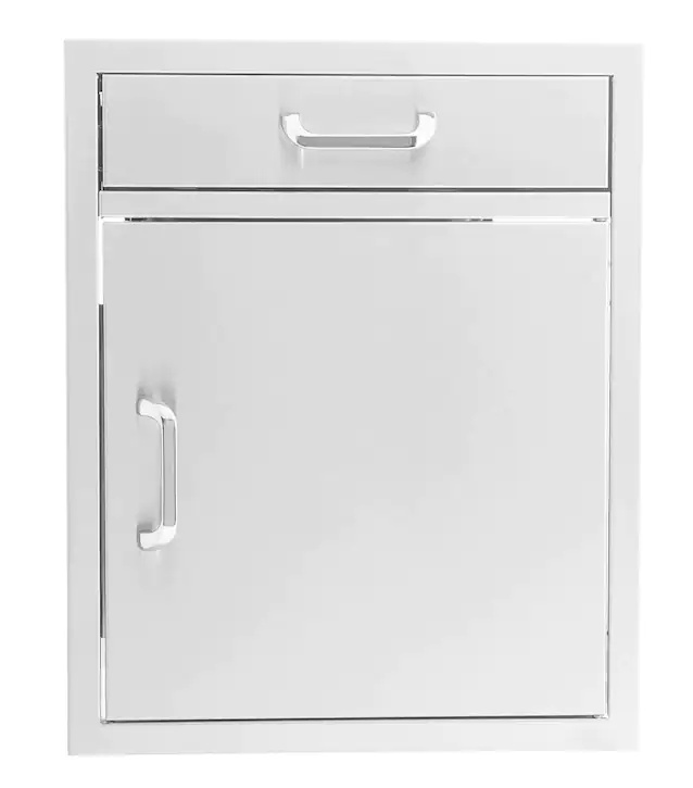 The BBQ Island 260 Series 21 Inch Single Door w/4 Inch Drawer Combo is an all stainless steel storage drawer and door combo that is a perfect accessory for any outdoor kitchen. The 304 Stainless Steel construction is extremely durable and built to withstand the elements. These drawers are the perfect size for holding grilling tools and outdoor utensils with plenty of room to spare and the door is a great place to keep propane and, cushions and pool accessories. Lifetime warranty on all stainless steel parts. Matches all BBQ Island 260 Series handles and stainless steel.