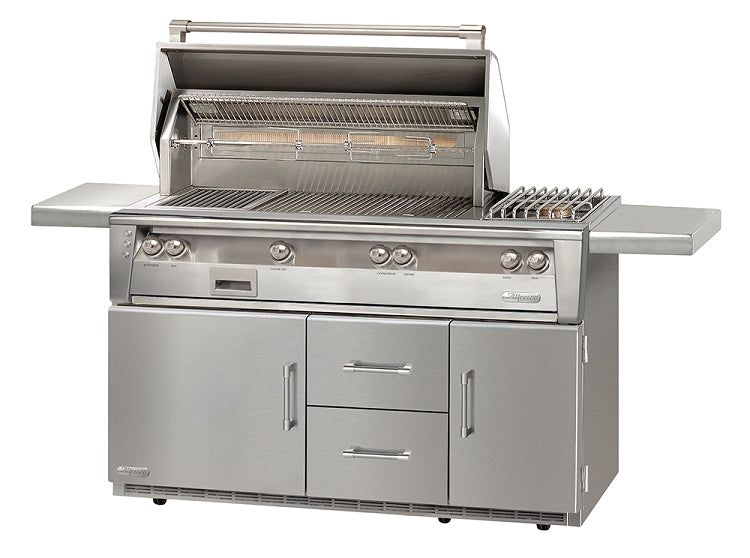 Alfresco LXE Series 56 Inch Standard Natural Gas Grill w/ Sideburner on Refrigerated Base