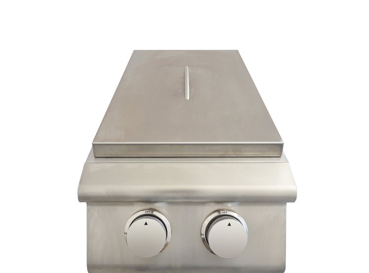 The BBQ Island Double Side Burner combines the comfort of an indoor kitchen range with all the benefits of being outside. Specially designed for performance and function, a BBQ Island Double Side Burner is the perfect addition to your outdoor kitchen. Commonly used for finish cooking, sauces, or heating foods that require lower, more controlled temperature than your grill. This all #304 Stainless Steel Side Burner offers the convenience of range top cooking and grilling simultaneously with the durability to last a lifetime.
