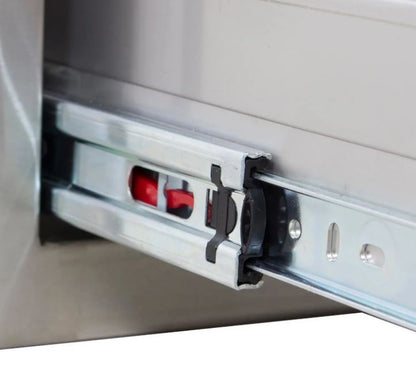 This Blaze trash storage drawer features commercial grade 304 stainless steel construction to withstand outdoor elements and a unique, completely rounded bevel design that enhances strength and durability. Designed with space in mind, this narrow drawer provides an elegant solution to space saving. This quality outdoor storage drawer is accented with a sleek straight handle. Blaze storage drawers are the perfect storage solution for any outdoor kitchen!