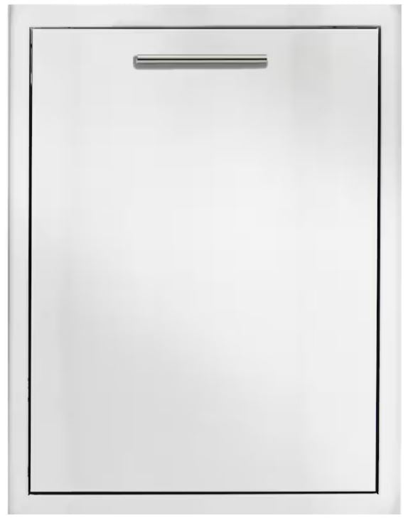 This Blaze double trash and recycle bin features commercial grade 304 stainless steel construction to withstand outdoor elements and a unique completely rounded bevel design that enhances strength and durability. Conveniently hide the trash and recycling bins and gain easy access by pulling the roll out drawer open.