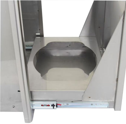 This Blaze trash bin features commercial grade 304 stainless steel construction to withstand outdoor elements and a unique completely rounded bevel design that enhances strength and durability. Conveniently hide the bin and gain easy access to the trash by pulling the roll out drawer open. The drawer can also be used to store a standard 20 pound propane tank. This quality outdoor kitchen trash bin is double-lined and accented with a straight handle.