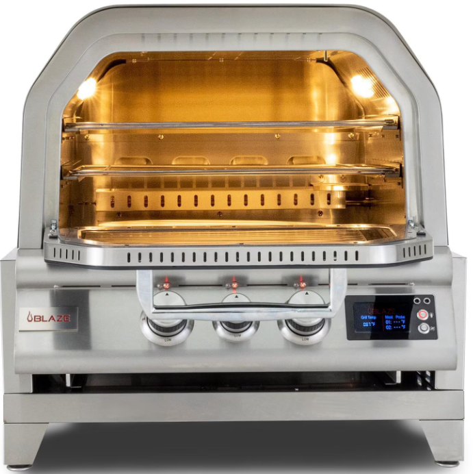 Experience the next level of outdoor cooking with the Blaze Pizza Oven. Far more than your average pizza oven, the Blaze Pizza Oven is a top-of-the-line product destined to make your backyard the destination for deep-dish, flatbread, or any other style of pizza. But the versatility doesn’t stop there — not when your pizza oven can also cook up dishes like a sumptuous rack of lamb, mouth-watering steak, or whatever your heart desires, thanks to a vertical rotisserie rod and double cooking racks. Add two digital meat probes that ensure perfection with each cook, and you’ll see that this powerful (and sleek) outdoor oven can truly do it all.