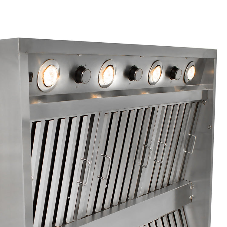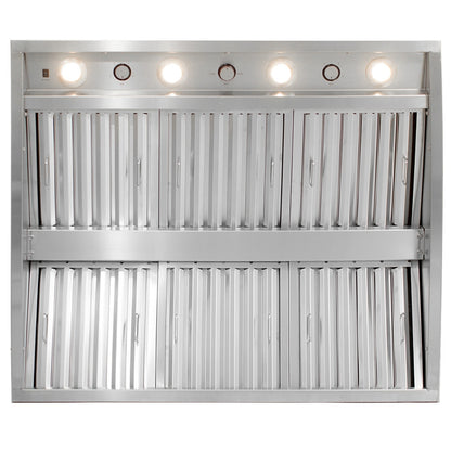 Blaze 36-inch vent hood interior, showcasing high-performance fans, grease filters, and efficient airflow design for superior ventilation