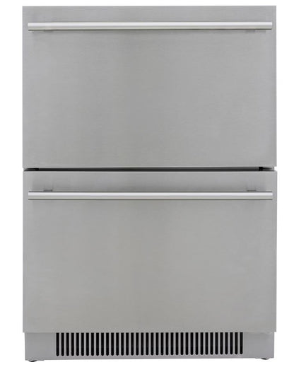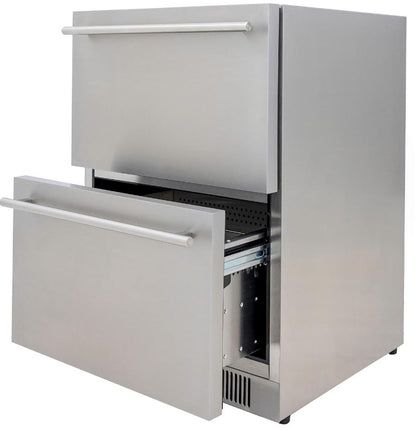The Blaze 5.1 Outdoor Rated Double Drawer Refrigerator is the ideal space saving solution for outdoor kitchens built into your island. With 5.1 cubic feet of space, this refrigerator has ample room and can hold up to 154 cans! The double drawers include adjustable and removable drawer dividers, letting you customize the interior. This refrigerator also includes high-quality soft-close drawers! The 304 Stainless Steel design pairs well with all of your other outdoor kitchen products, and includes a digital thermostat and temperature display. The Blaze Double Drawer Refrigerator also includes interior LED lighting for entertaining at night.