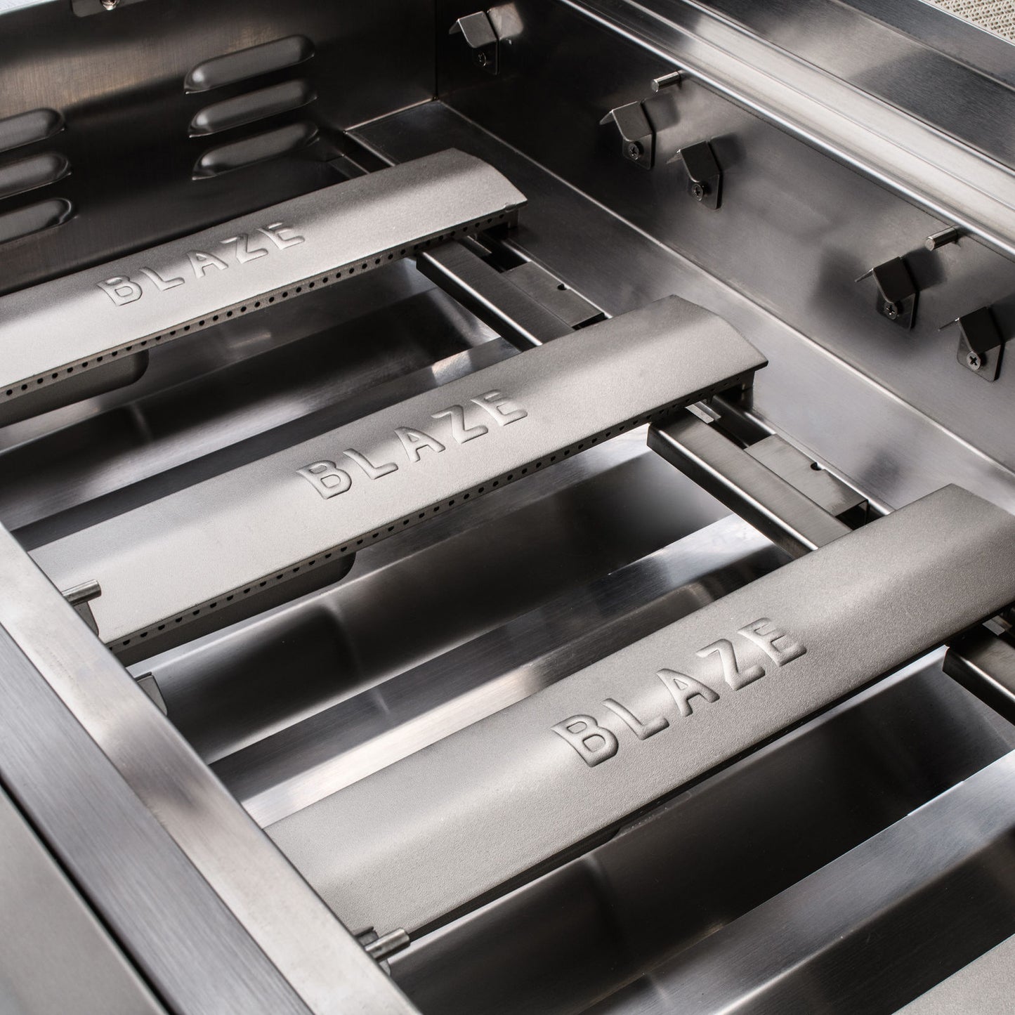 Blaze introduces an affordable commercial style grill that was designed with your outdoor BBQ desires in mind. Blaze gas grills feature precision cut, 304 stainless steel components which bring the promise of lasting durability to your outdoor BBQ! This model takes things to the next level with our signature SRL led accent lights and integrated halogen hood lighting. Blaze gas grills have a lifetime warranty that warrants against any defects in the manufacturing and workmanship of the main burners, cooking grids, body, flame tamers, heat zone separators, warming rack, and control valves.