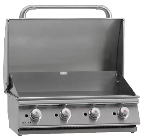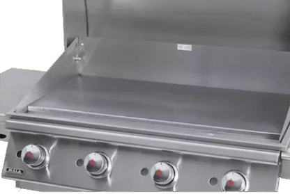 Like all of Bull’s products, the 30" Bull Commercial Style Griddle is constructed of 304 stainless steel and uses four burners to produce 60,000 BTUs of power under a chromium plated griddle designed to withstand its intended outdoor application. The unit is 30" wide so it will fit in most outdoor kitchens and is available in both LP and NG versions.