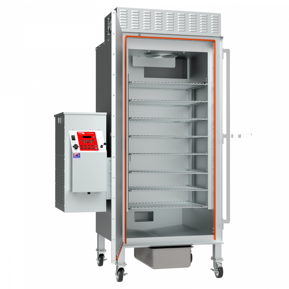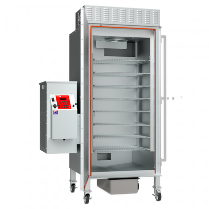 Cookshack's proprietary IQ5 electronic time and temperature controller is easy to use and gives you consistent results with every load. It has a smoke, cook and rest features that are standard on all commercial FEC models. When the smoke-cook cycle has finished, the controller drops automatically to the resting temperature of the product.
