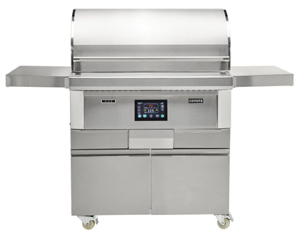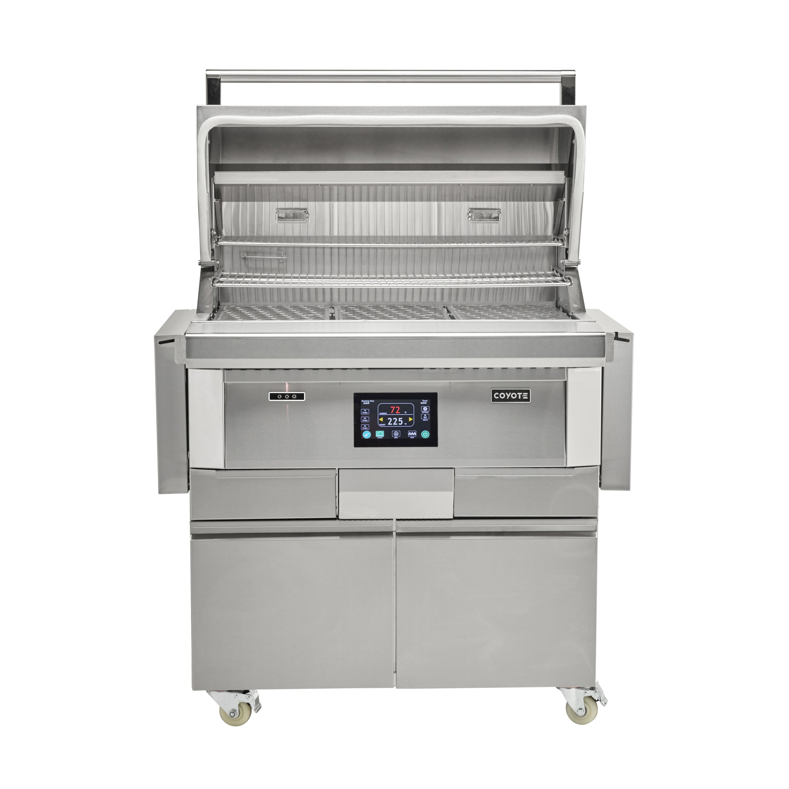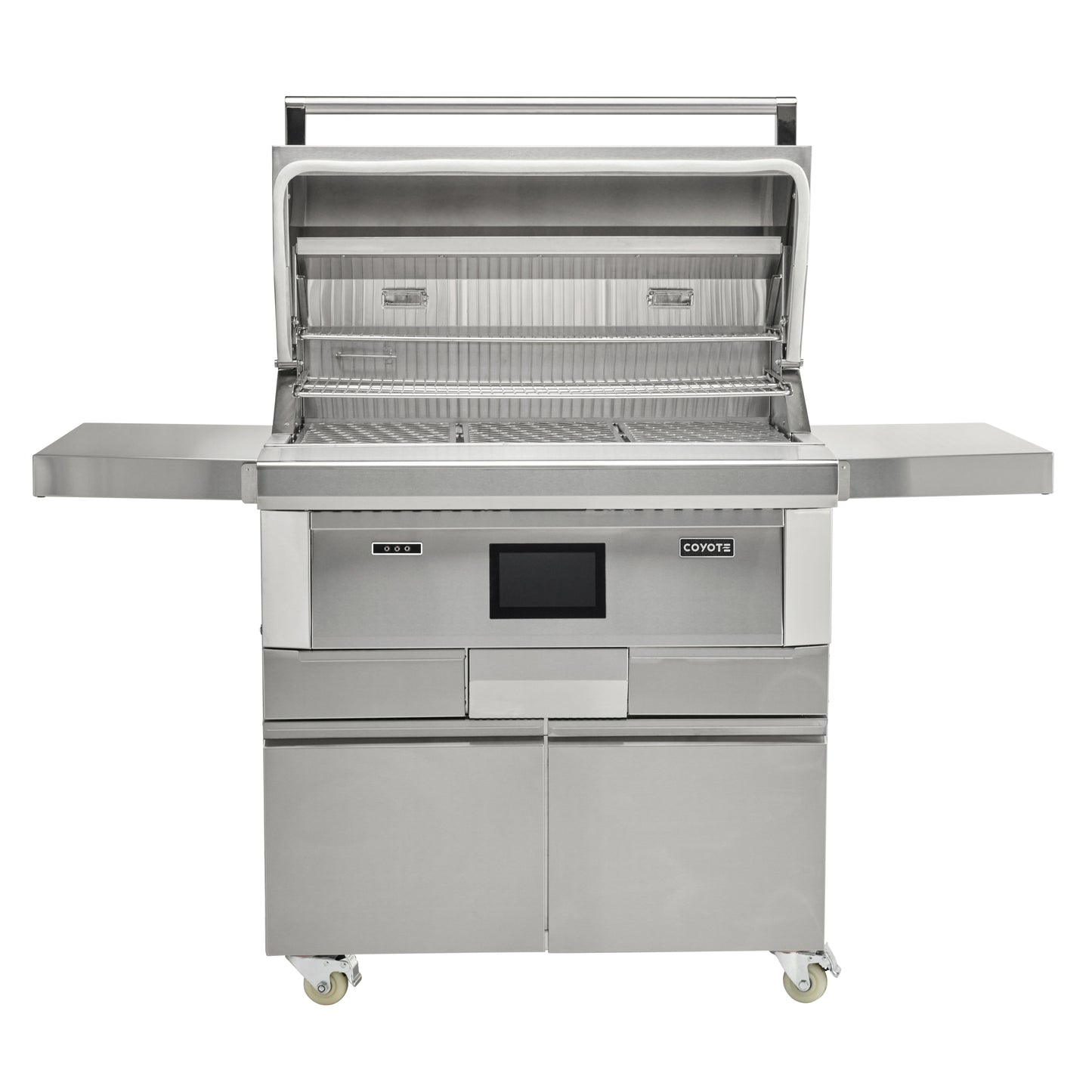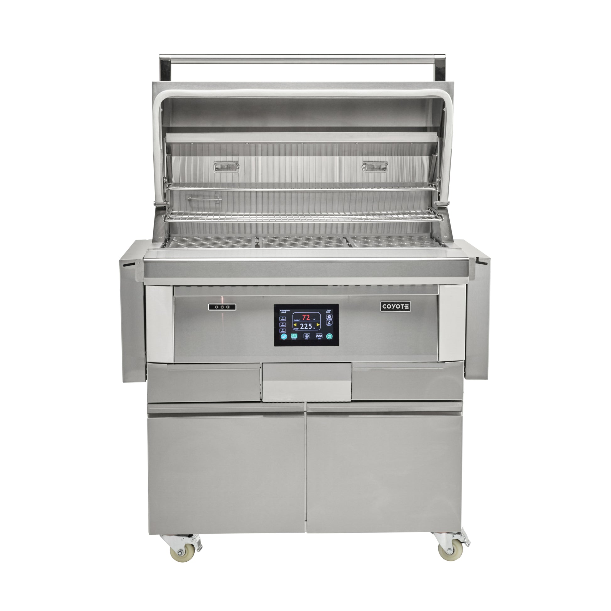 The Coyote 36" Next-Gen Pellet Grill is designed to elevate your outdoor cooking game with power, precision, and convenience. A front-loading pellet hopper and spring-assisted hood make operation effortless, while the double-walled canopy with gasket, integrated wind guard, and rain guard ensures reliable performance in any weather. The Smart Drop™ pellet feed system maintains a consistent fuel flow, and the dual fan, auger, and drip tray work together to deliver even heat distribution across the grill surface. Featuring the versatile Versa-Rack™ system, this spacious grill offers multiple cooking surfaces—perfect for feeding a crowd. With upgrades to the burner pot, ignitor, and temperature accuracy, the Coyote 36" Pellet Grill brings next-level performance to your backyard.