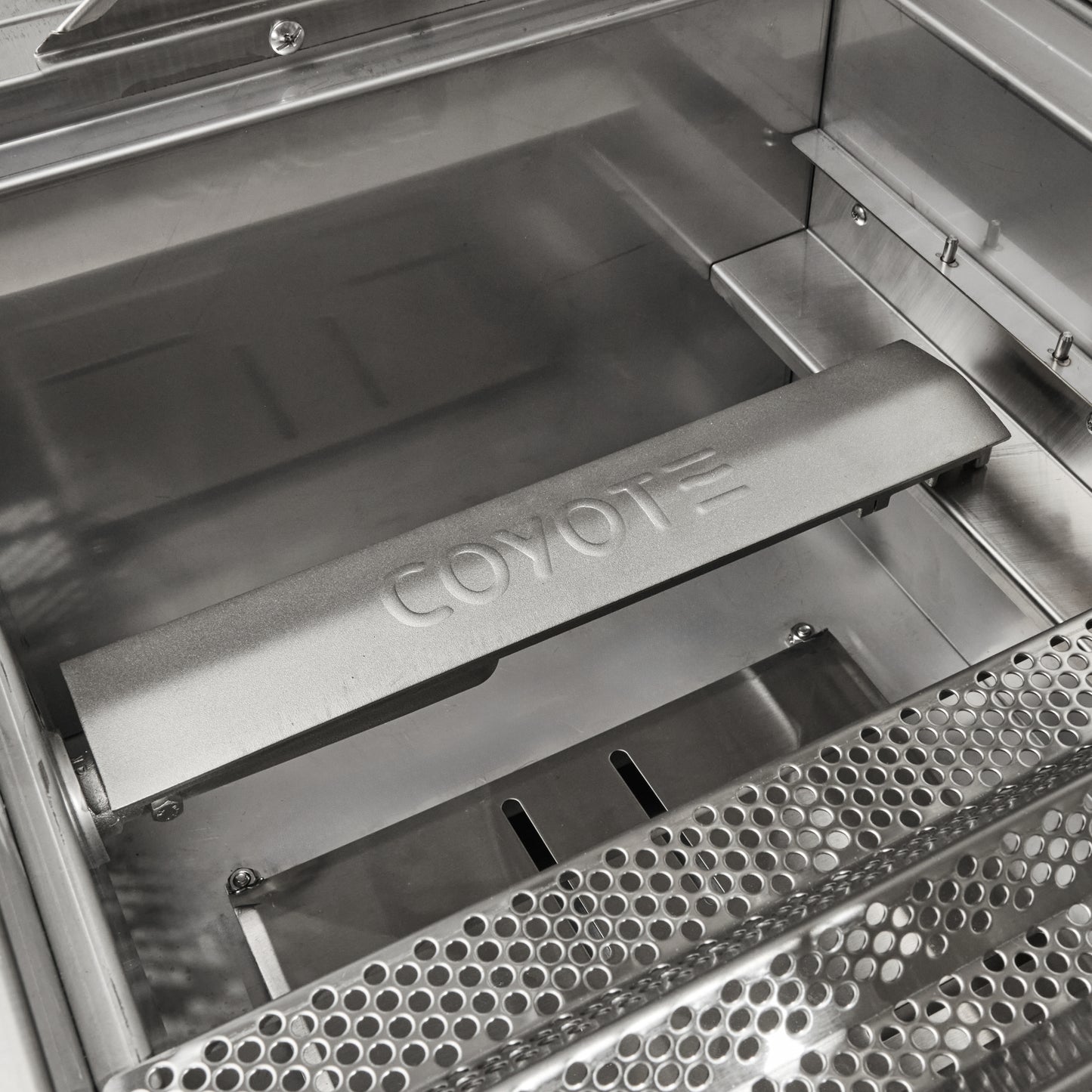 Coyote Outdoor warrants that each product will be free from defects in workmanship and materials on the stainless steel frame/housing and stainless steel burners for the lifetime of the original purchaser. They also warrant the cooking grids for five (5) years, the flavorizer bars and electric/plastic components for two (2) years, and the ignition systems/valves for one (1) year. Labor not included.