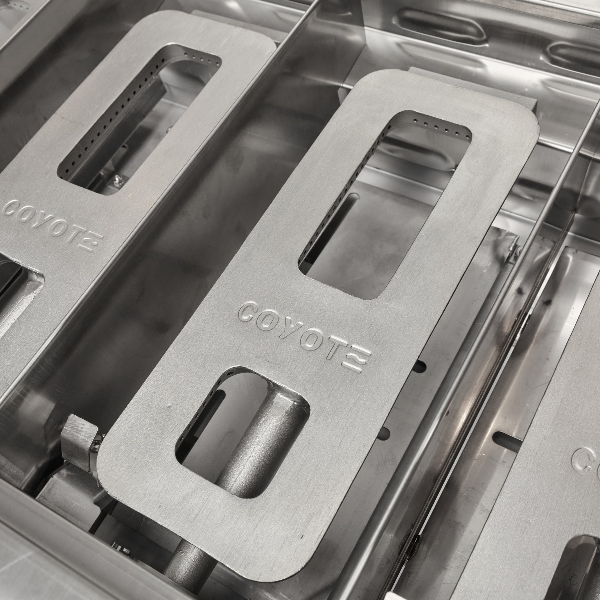Transform your outdoor cooking space with the Coyote CL-Series 36-Inch Built-In Propane Grill. Expertly crafted from durable 304 stainless steel, this grill is loaded with high-end features like a spring-assisted hood, interior illumination, and heat zone separators for precise temperature control. The double-walled hood enhances heat retention, while an integrated wind guard ensures consistent performance—even on gusty days. The refreshed design includes refined knob and bezel details, a redesigned end cap, and a solid handle for a polished, modern look.