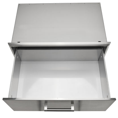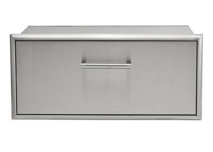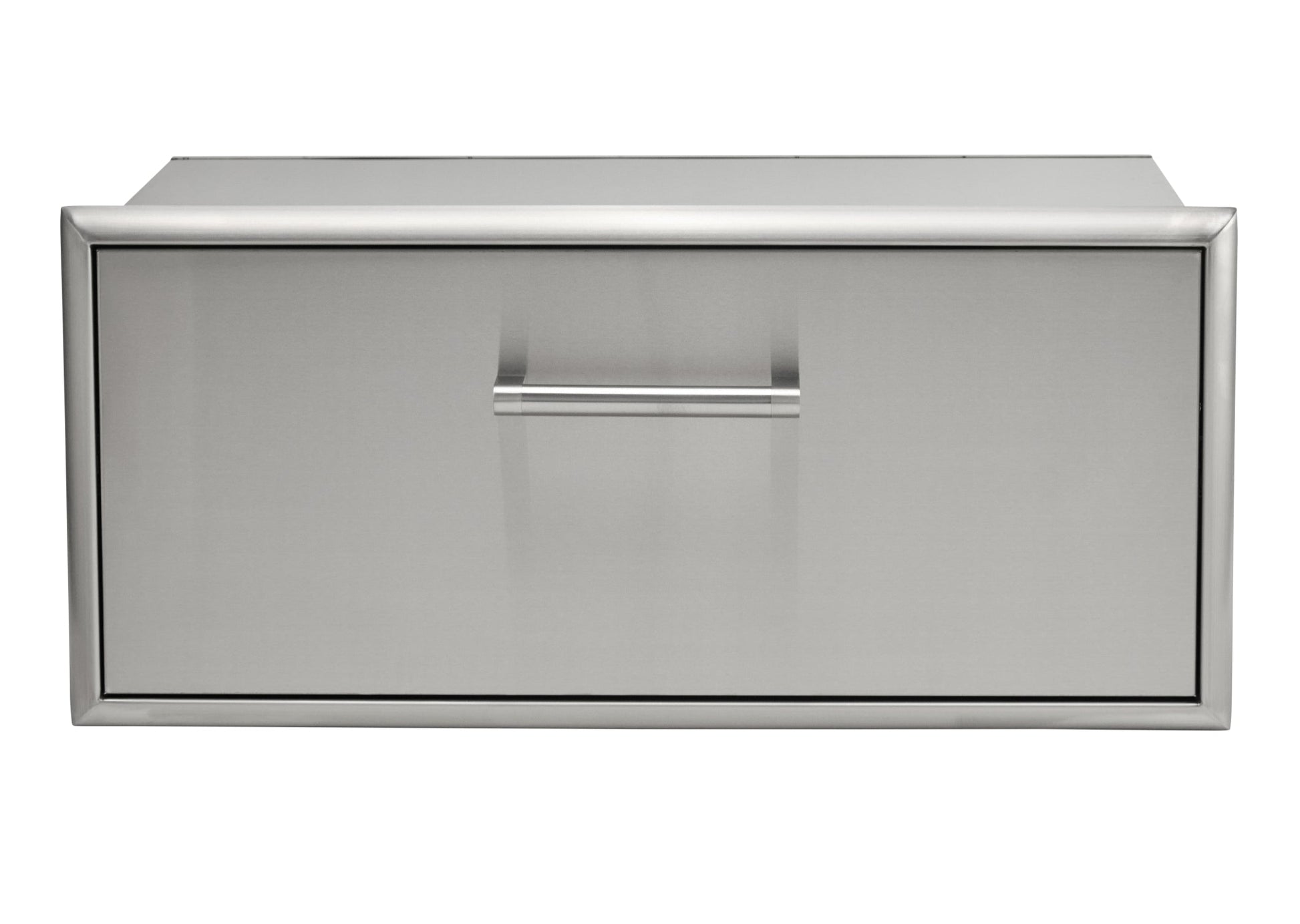 Maximize storage in your outdoor kitchen with the Coyote 32 inch Single Storage Drawer. Featuring a spacious interior and additional shelf space this stainless steel storage solution provides convenience and durability while maintaining a high-end built-in appearance.