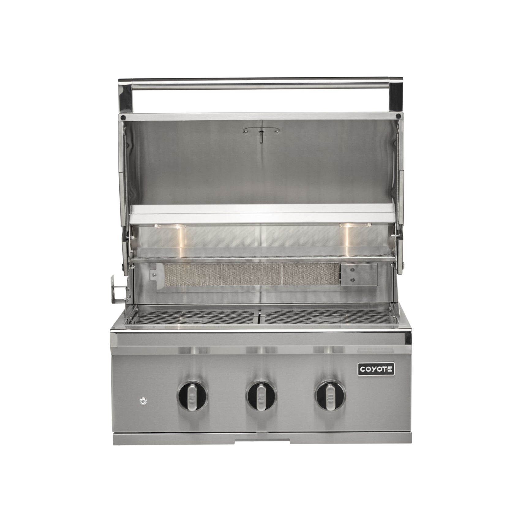 The Coyote SL-Series 30-Inch Built-In Propane Grill delivers top-tier performance with advanced safety features and a sleek, high-end design. Constructed from durable 304 stainless steel, this grill is loaded with premium upgrades including a spring-assisted hood, interactive interior lighting, and a convenient warming rack. A distinctive illuminated Coyote logo not only enhances your outdoor kitchen’s style but also lights up your grilling space—perfect for nighttime cooking.
