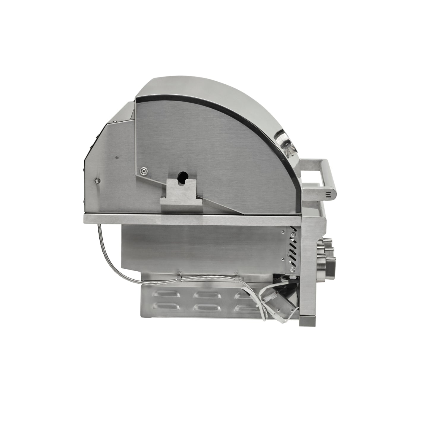 Performance-wise, two powerful Infinity Burners combined with innovative volcanic stone briquettes deliver exceptional heat retention and even distribution across precision laser-cut grates. Versatility is built in, thanks to an interchangeable sear burner, rear burner, and rotisserie kit—perfect for grilling, searing, and slow-roasting with ease.