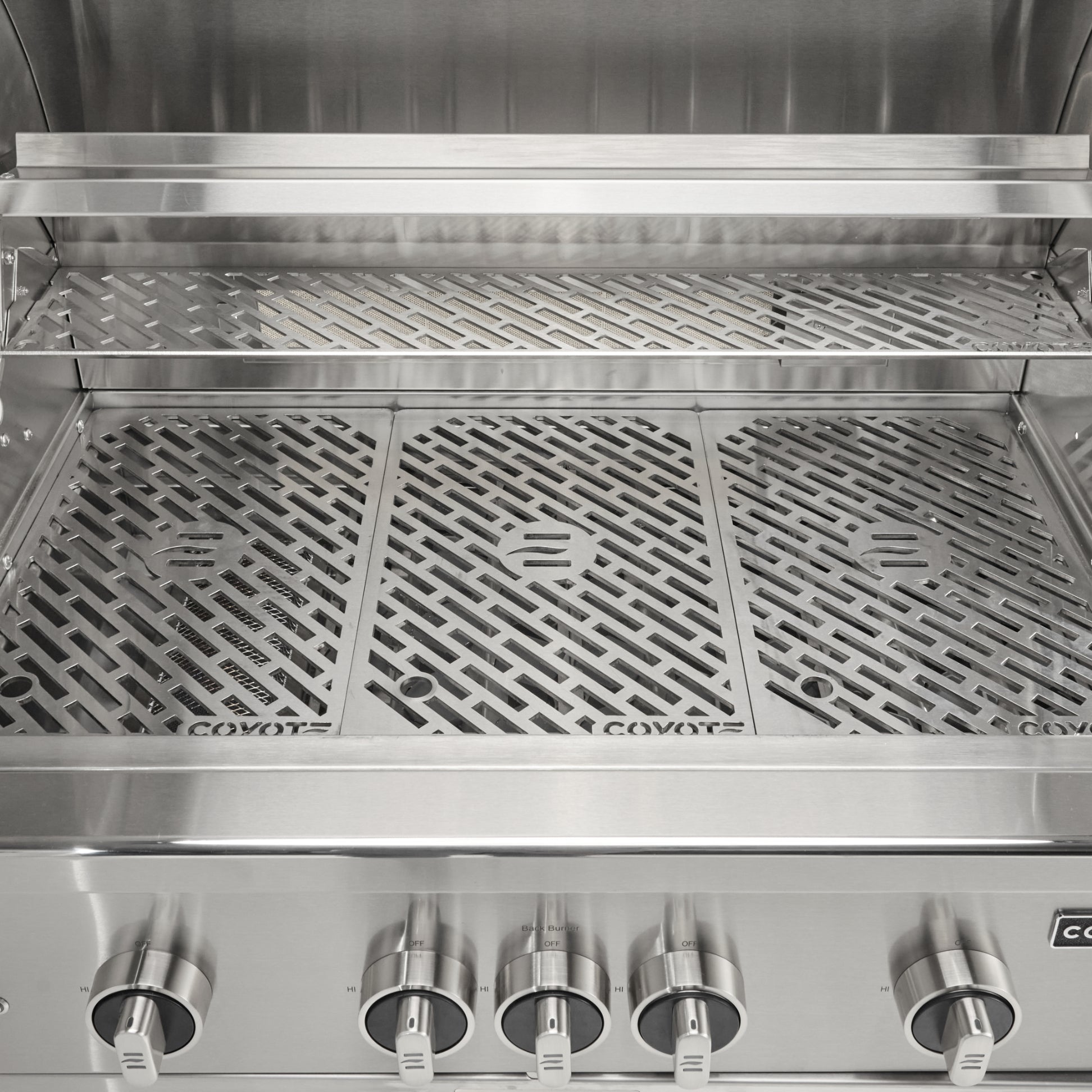 The Coyote SL-Series 36-Inch Built-In Propane Grill delivers top-tier performance with advanced safety features and a sleek, high-end design. Constructed from durable 304 stainless steel, this grill is loaded with premium upgrades including a spring-assisted hood, interactive interior lighting, and a convenient warming rack. A distinctive illuminated Coyote logo not only enhances your outdoor kitchen’s style but also lights up your grilling space—perfect for nighttime cooking.