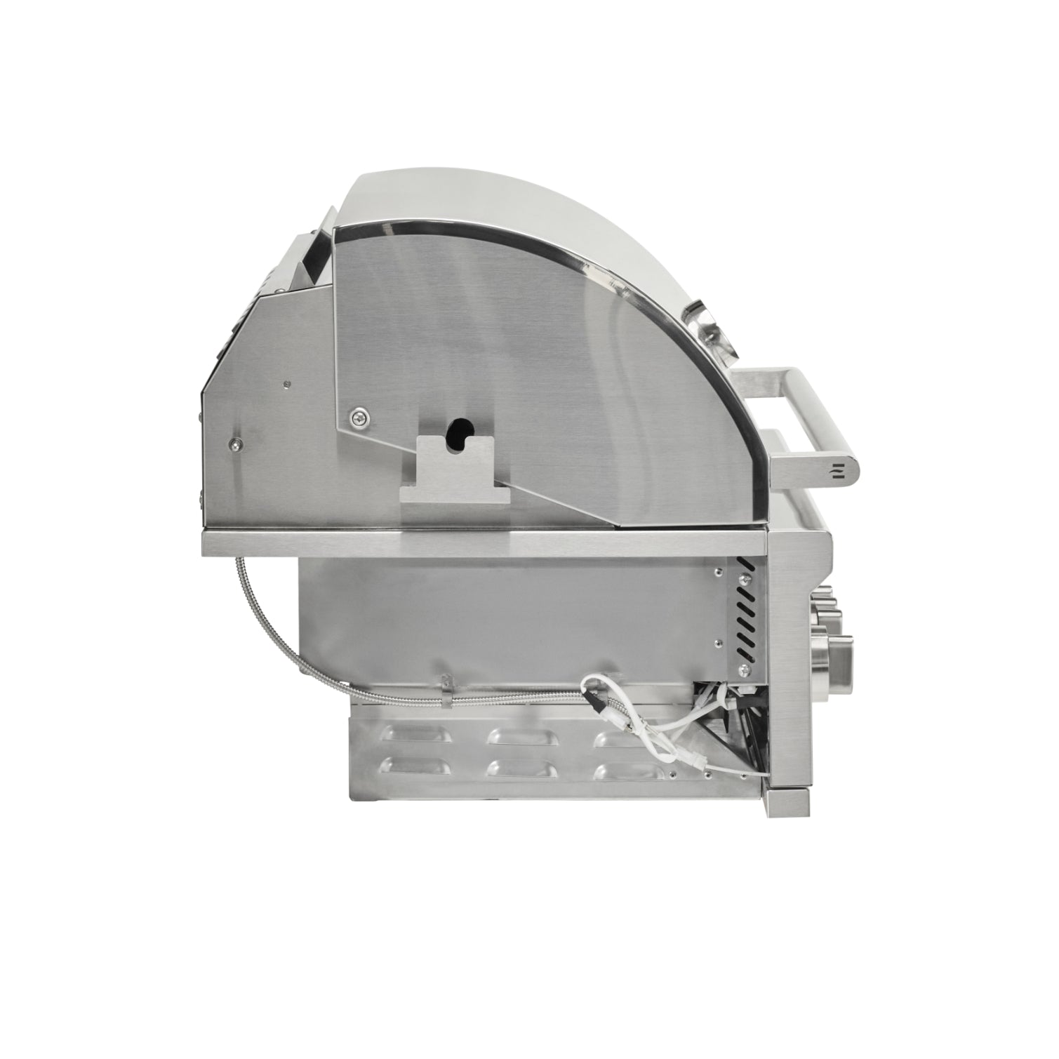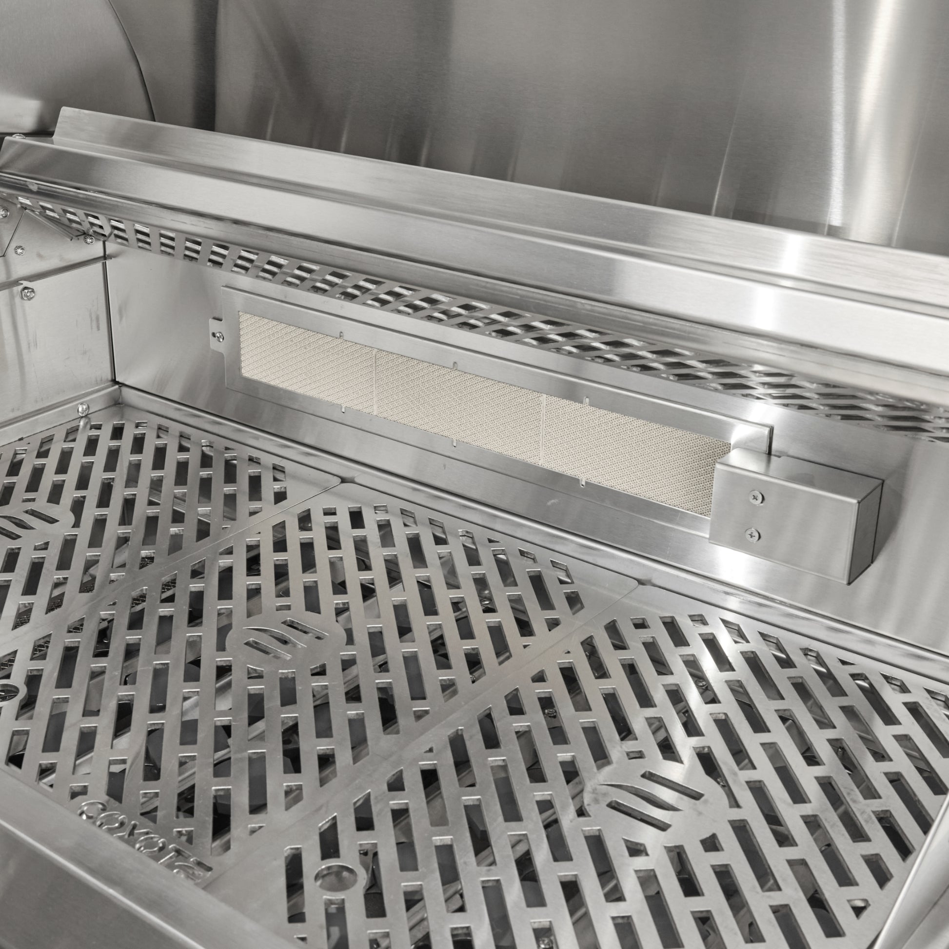 Performance-wise, two powerful Infinity Burners combined with innovative volcanic stone briquettes deliver exceptional heat retention and even distribution across precision laser-cut grates. Versatility is built in, thanks to an interchangeable sear burner, rear burner, and rotisserie kit—perfect for grilling, searing, and slow-roasting with ease.