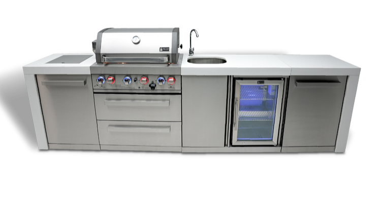 With all 304 Stainless Steel components, waterfall granite sides, and gliding rubber castor wheels with levelling feet, this outdoor kitchen is built to last. It comes propane-ready but can be converted to natural gas in minutes with the additional Mont Alpi Natural Gas conversion kit.