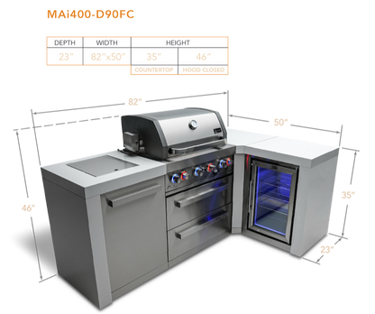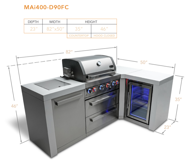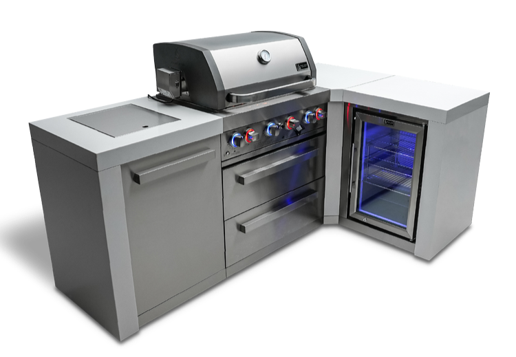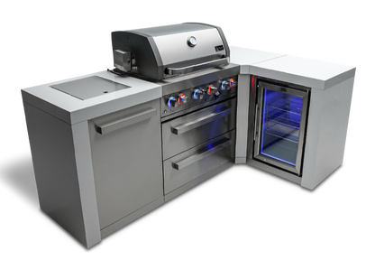 Mont Alpi 4 Burner Deluxe Island with Fridge 90-Degree Corner