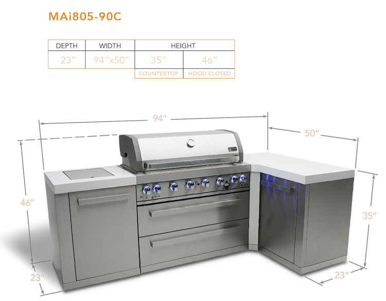 Mont Alpi 6 Burner Island with 90-Degree Corner