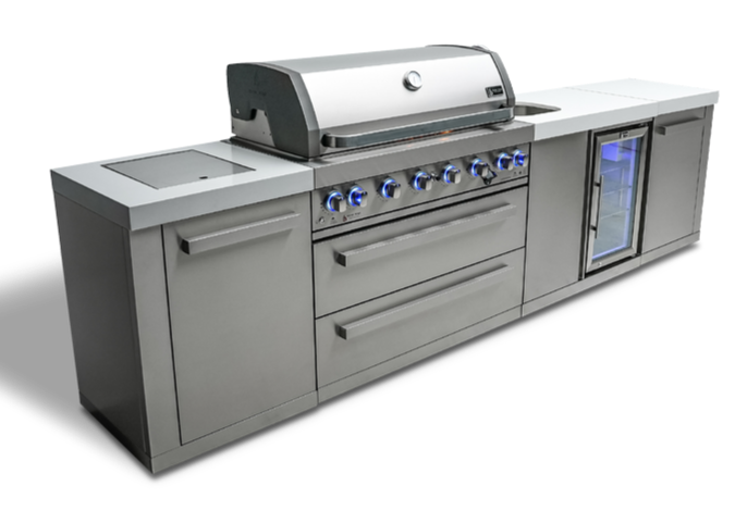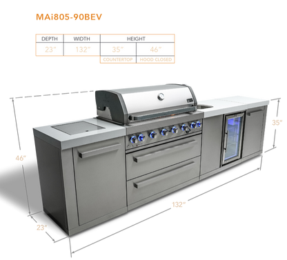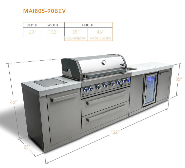 The MAi805-BEV is propane-ready but can easily be converted to natural gas with the Mont Alpi Natural gas conversion kit. Combining style, functionality, durability, and peak performance, it's the perfect grilling companion for any outdoor gathering. Impress your guests and satisfy your grilling needs with the Mont Alpi 6-burner island with a beverage center.