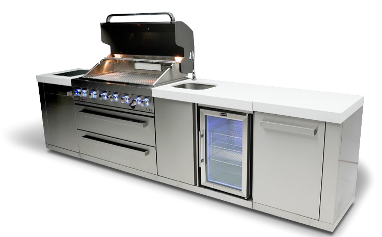 Get ready to elevate your outdoor cooking and entertaining game with the Mont Alpi 6-burner island with a beverage center - the perfect companion for outdoor entertaining. With six burners, an infrared side burner, and an infrared rear burner, the MAi805-BEV is versatile and delivers peak performance every time. The LED knob lights and bright internal cooking lights ensure precise control over your culinary creations, while the sleek counter granite surfaces make cleaning up a breeze.