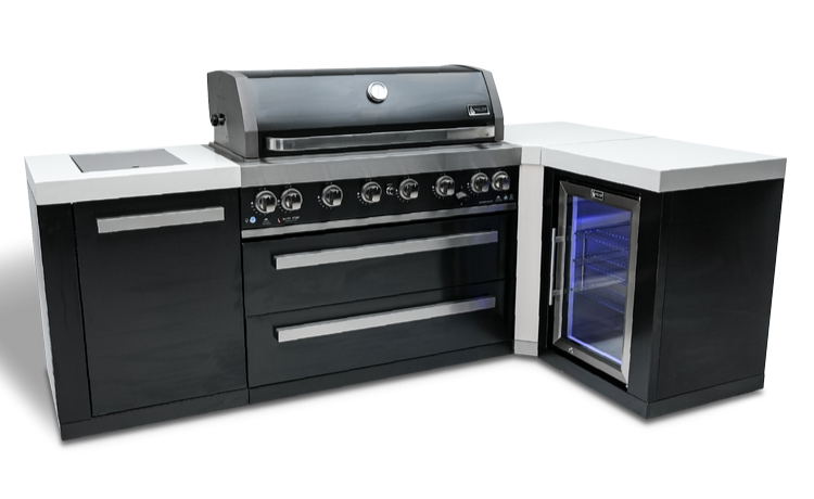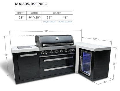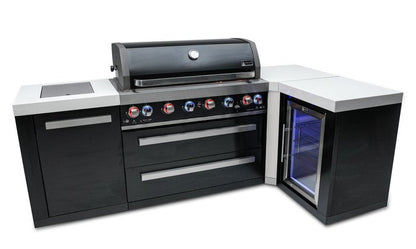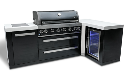 Mont Alpi 6 Burner Island with Fridge 90-Degree Corner Black Stainless Steel