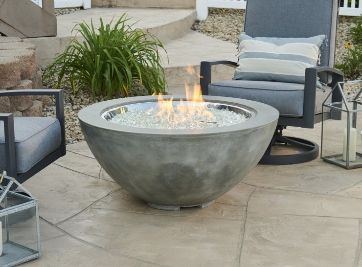 The 42” Cove Gas Fire Pit Bowl is the perfect addition to any contemporary outdoor space. The Natural Grey Supercast concrete lets the focus be on the stunning 30" Round stainless Steel Crystal Fire burner. The organic, nature of the concrete is unique to each fire pit. Color variations and casual pitting are common attributes to the fire pit.