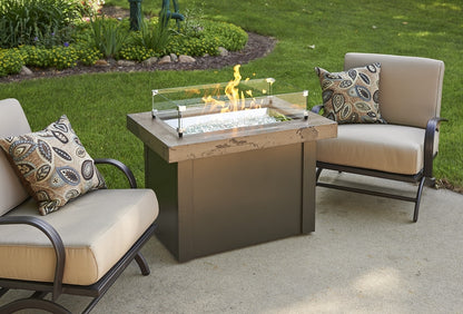 This Providence Fire Pit Table with Stainless Steel Top features a sleek modern design with an outdoor-rated Bronze Powder-coated Metal Base and White Onyx Top. Perfect for use in small outdoor spaces like patios or balconies, as well as modern and commercial settings. The Providence Fire Pit Table features a 1224 Crystal fire burner for a compact design. The Providence design is durable, beautiful, and affordable and will look great in any outdoor space.