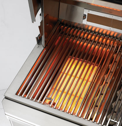 Drafting vents draw cool air from the bottom of the firebox keeping the heat above the burners where it is needed and help keep the heat more consistent and evenly distributed. Since the grill is constructed from 304 series stainless steel seamless heli-arc welded seams it has tremendous strength and durability which is essential for outdoor use. An easy open spring assisted hood makes opening and closing the well made hood as easy as opening and closing cheaper single layer hoods. Automatic interior lighting and a LED lit control panel make cooking at night as easy as cooking during the daytime. The multi-position warming rack allows you the flexibility to slow cook foods or just keep them warm while the rest of the meal is finishing cooking.